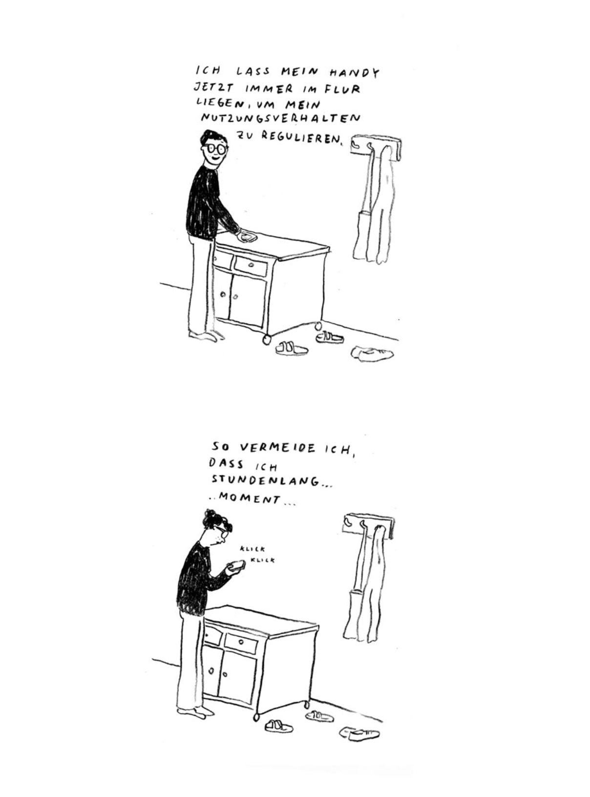 Christiane Haas hat wieder ganz genau hingeschaut. Alltag, Schwangerschaft und auch einfach Menschsein – sie schafft es immer noch so nebensächlich wirkende Situationen auf den Punkt zu bringen. In Cartoons und kurzen Comicstrips, dieses Mal sogar einige in Farbe.